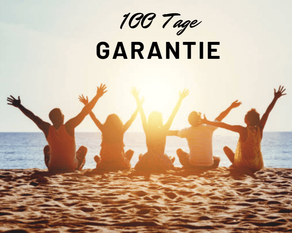 Du kannst dieses Produkt nach Kauf 100 Tage testen. Wenn Du dann nicht zu 100% zufrieden bist, melde Dich einfach bei uns und erhalte sofort eine vollständige Rückerstattung.